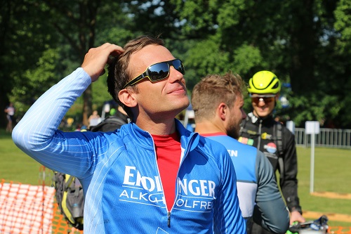 Sonntag ging es dann endlich los. Um 7:45 Uhr haben wir uns zum gemütlichen Frühstück im Freien getroffen. Gestärkt ging es dann auch bald schon los zum Wettkampf. Ich persönlich bin sehr froh, dass beim Essen hauptsächlich über andere Ereignisse wie den ITU-Weltcup oder weitere Triathlon Wettkämpfe gesprochen wurde, aber nicht explizit über das, was nun vor uns stand :D Der Aufenthalt in Gütersloh hatte, abgesehen vom Wettkampf, wirklich etwas von Ferienlager mit Freunden. Da kann ich Paul Clauß nur zustimmen, der mir vorher gesagt hat, dass „sich die Reisen zu den WK-Orten in der 2. Bundesliga anfühlen wie ein Ferienlager, mit einer Stunde intensiven Sport“ (danke, das hat mir wirklich etwas die Angst vor dem ersten großen Rennen genommen!).
