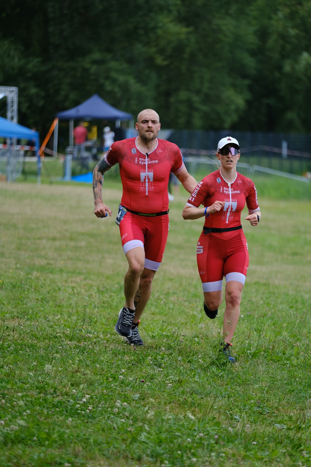 Ines und Martin meistern den zweiten Durchgang zusammen und für René und Simon geht es wieder ins Wasser. Auf der Laufstrecke mobilisieren René und Simon die letzten Reserven. René finisht für das gesamte Team und ein paar Minütchen später sind mit Simon alle im Ziel und freuen sich über ein gelungenes Rennen mit spannendem Wettkampfmodus.