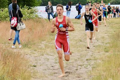 Wechselzone 1 Schwimmen-Rad – am Schwimmstart Mauster Kiessee