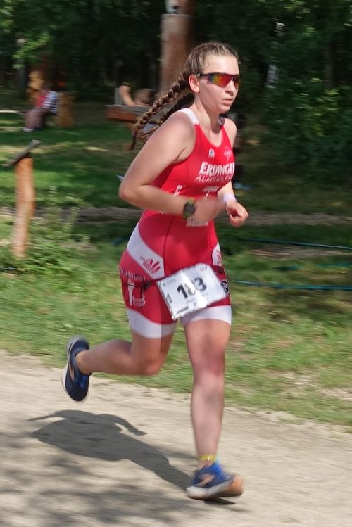 Dann sind wir Einchecken gegangen, bereiteten unsere Plätze vor und zogen die Einteiler an. Nach einem kurzen Lauf-ABC gings schon zum Start. Da alle Kinderaltersklassen zusammen starteten, war der Start ziemlich durcheinander. Aus dem hüfttiefen Wasser ging es los.