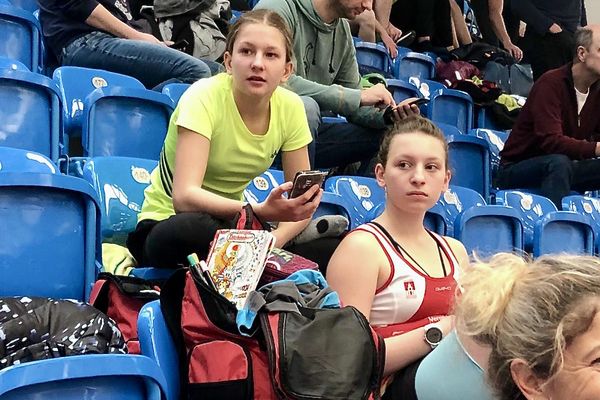 Als erstes haben wir noch kurz vor der Schwimmhalle gewartet, bevor wir reingegangen sind, um uns einen guten Platz für Rucksäcke und Co zu beschaffen.