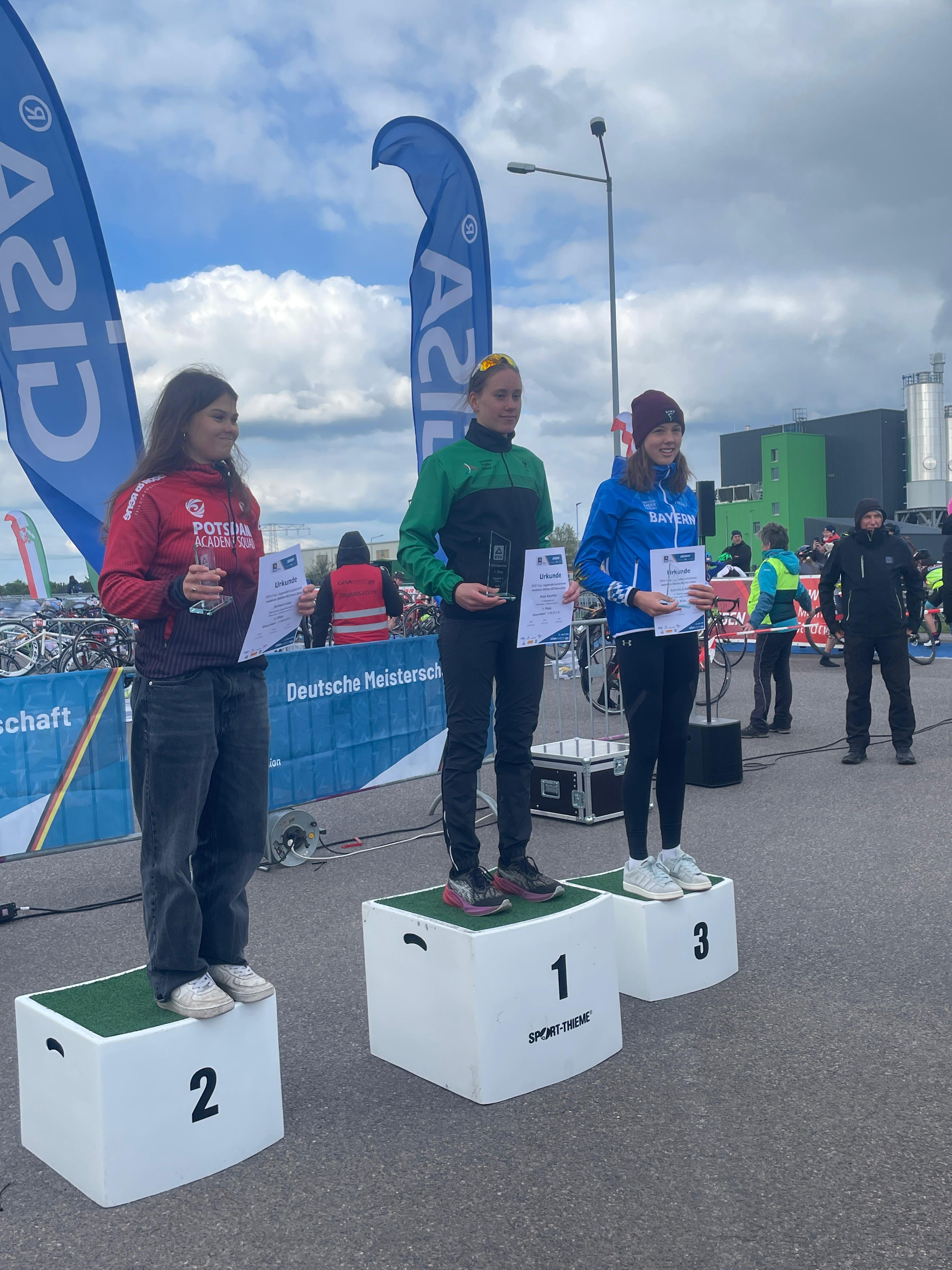 Naja holte das beste Ergebnis und konnte aufgrund einer starken Radleistung ihre Altersklasse Jugend A weiblich sensationell und etwas überraschend gewinnen. Nach dem Schwimmen war Naja 15., kämpfte sich aber am Sonntag nach ganz vorne.