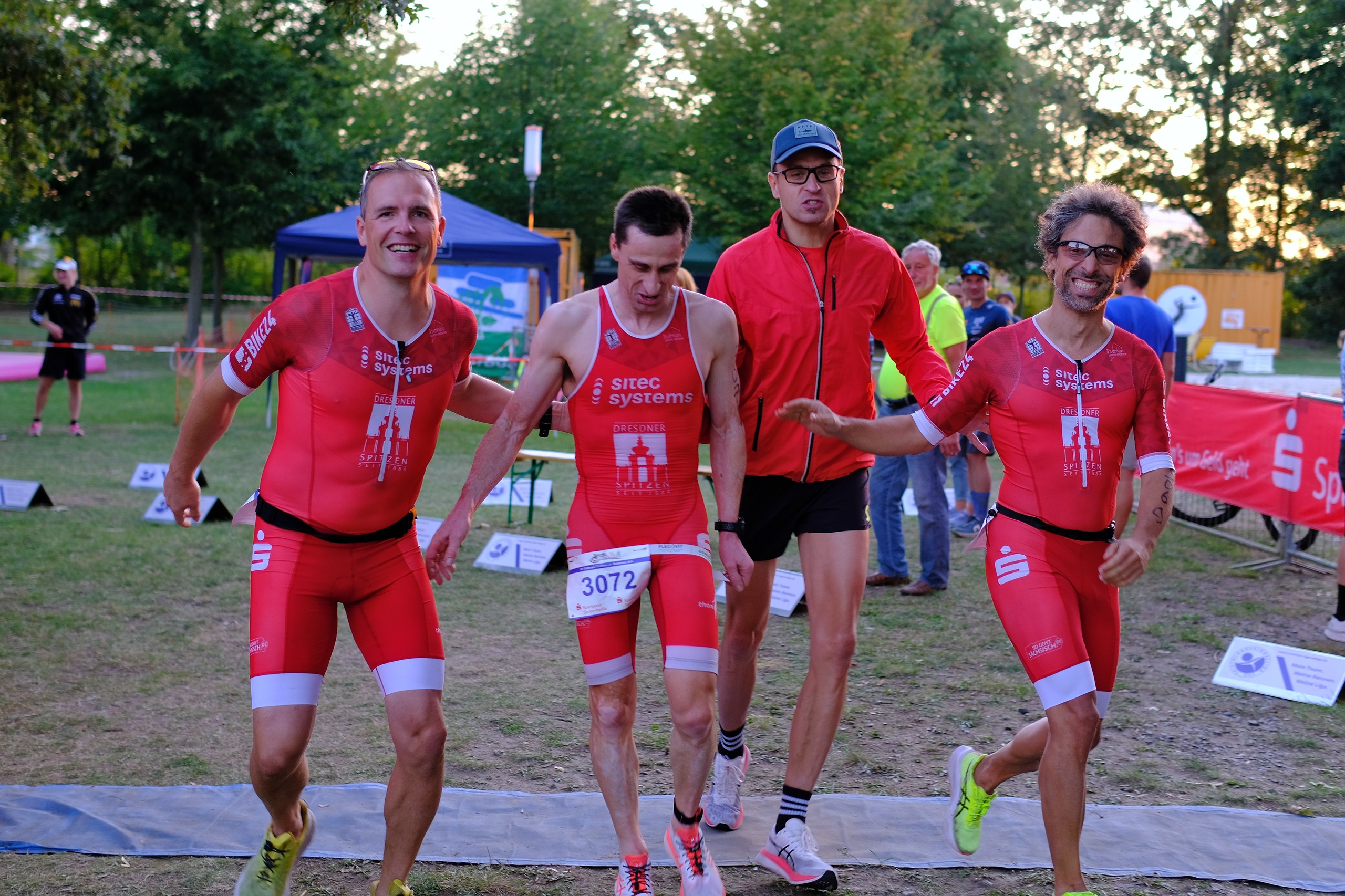 Erst als die Sportler:innen von der Radstrecke zur Wechselzone abbogen, wurde sicher ersichtlich, wie viel Abstand zu den anderen Teams bestand. Die Abstände zum vorderen und hinteren Team waren am Ende so stark angewachsen, dass die letzten Sportler:innen Paulina, René sowie Tim auf den Zielsprint verzichten konnten. Wobei das Masters Team kein Team mehr vor sich hatte, sodass es am Ende Platz 1 erreichte. Nach Platz 1 kommt Platz 2, welches sich das Frauen Team sicherte und schließlich fehlt noch Platz 3 für die Männer.