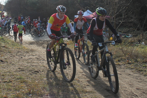 Meinen ersten Teampartner hatte ich am Vortag noch erfolgreich für ein warmes Bier verkauft. Das Wissen, dass noch eine ganz schöne Rakete in der Partnerbörse auf Auslösung wartete, hatte darauf freilich keinerlei Einfluss. Es ging mir natürlich nur darum Andreas einen sympathischen Teampartner zu versorgen. Ich Guter! Danny machte seine Aufgabe dann auch mehr als beeindruckend und rannte auf und davon. Das brachte mich in die früher selten und inzwischen aber absolut ungewohnte Lage als erster aufs MTB-Tüfftüff zu hüpfen. Den Vorsprung konnte ich wegen Problemen mit dem Biomaterial (mein Körper!) nicht lange gegen die von hinten heranstürmenden stollenbewehrten Zweiradgladiatoren verteidigen.