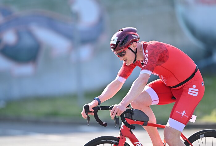 Als Nächstes hieß es, raus aus dem Wasser, in die Wechselzone, zum Rad und ab auf die Radstrecke. Nachdem wir alle aufgeschlossen hatten und die erste Kurve etwas verschlafen haben, kamen schon die Wettstreiter aus Berlin hinter uns, die sich bereits auf der zweiten. Radrunde befanden. Also haben wir drei uns für 1,5 Runden drangehangen. Die dritte Runde absolvierten wir dann wieder allein und fuhren wieder in die Wechselzone. Diese erreichte ich von uns dreien als Erster und verließ sie als letzter. Was daran lag, dass ich meinen Beutel erst nicht finden konnte und in der Zwischenzeit Tim und Robert schon wieder weg waren.