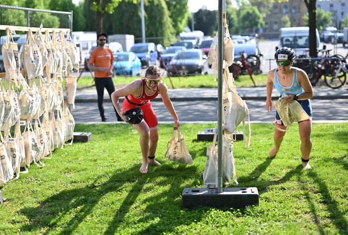 Auf meiner Bahn zeigte sich schnell, dass meine Wettstreiter sehr motiviert waren und die 400m in 1:15-1:20/100m schwammen, was für mich bedeutete, dass ich als letzter und etwas deprimiert die Bahn verließ. Zum Glück war es damit geschafft und es ging weiter auf die Laufstrecke. Da mir Bergläufe etwas mehr liegen, war ich wieder deutlich motivierter und konnte noch einige Plätze gut machen. Meine Carbonschuhe werde ich das nächste Mal aber nicht anziehen, weil sie sich auf dieser Strecke sehr schwammig liefen.