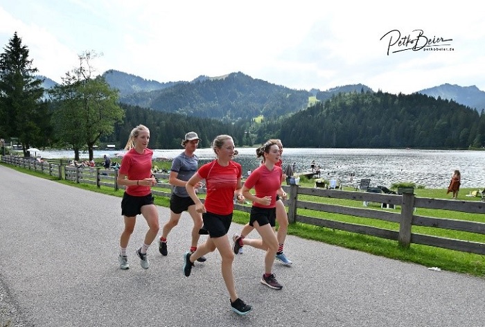 Mittlerweile sind die Abläufe schon etwas Routine. Als erstes waren wir am Spitzingsee laufen. Herrlich! Dabei haben wir direkt einen Teil der Laufstrecke erkundet. Auch diese war hügelig, aber das Panorama entschädigt für einiges!