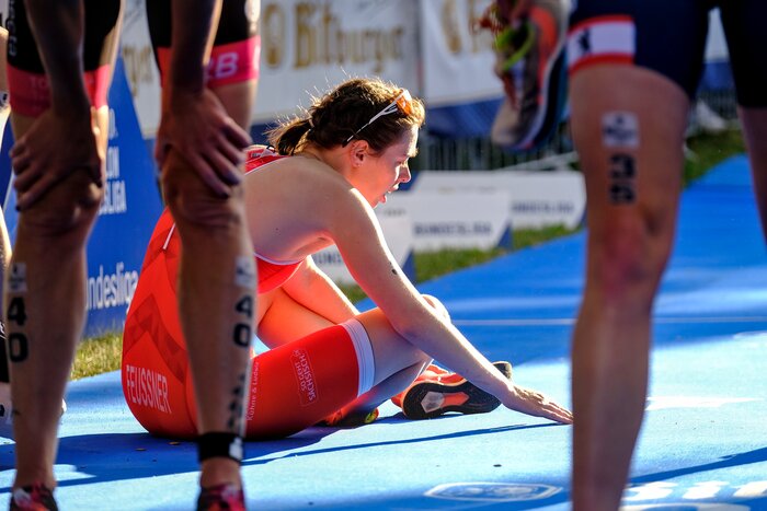 Sophie kann heute nicht an ihre gewohnte Schwimmperformance anknüpfen. Sie wäre sicherlich gerne ein bis zwei Gruppen weiter vorne gewesen, so wie in der Vergangenheit. Das Vollzeitstudium bei der Bundespolizei lässt nicht mehr so hohe Umfänge zu und die Konkurrenz schläft halt nicht. Sie fährt in der dritten Verfolgergruppe ohne Probleme mit und tut ihren Teil der Arbeit. In der eher ungeliebten dritten Disziplin macht sie einen kämpferischen Eindruck und fightet um jeden Platz. Sie kommt total ausgepumpt auf Rang 39 ins Ziel.