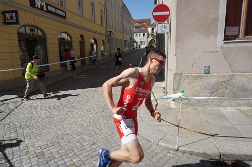 Da ich ein sehr langsamer Schwimmer bin, ist für mich am Anfang des Radrennens normalerweise die Überholspur das Mittel der Wahl. Bei diesem Wettkampftyp fand ich mich allerdings sehr schnell in einer passenden Radgruppe wieder. Nachdem der bergige Teil der ersten Runde abgearbeitet war, ging es in einem flacheren Stück zurück nach Kamenz auf die zweite Runde.