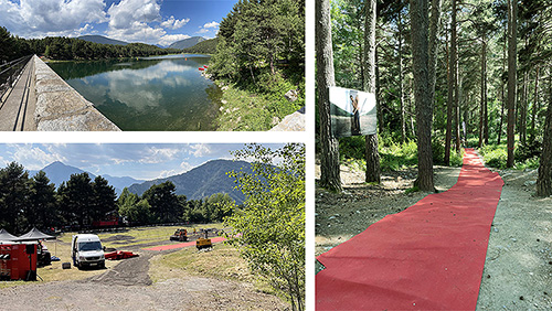Beim Begutachten der Schwimmstrecke und des Radwechselplatzes, liefen wir über bereits komplett verlegten roten Flies.