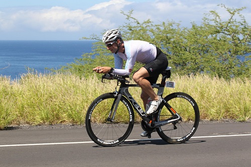 Auf dem Rad konnte ich sofort einen guten Rhythmus hinlegen. Hier gibt es auch nicht viel zu erzählen. Einfach den Kopp unten halten und 5 Stunden drücken. In Hawi, dem Wendepunkte der Radstrecke, gab es diesmal richtig viel Regen. Auf dem Rest der Radstrecke meinte es die Sonne sehr gut mit den Teilnehmern und es war die ganze Zeit mollig warm. Ne, heiß… Ich kühlte mich so gut es ging, hielt mich aus Scharmützeln heraus und überholte viele andere Teilnehmer. Mein Tritt war rund und das Tempo hoch. Was auch dem Wind geschuldet war der nur im Anstieg nach Hawi und die letzten 40 km bis zum zweiten Wechsel eine Rolle spielte. Wir hatten aber insgesamt einen eher windstillen Tag erwischt. Der dadurch fehlende Kühleffekt sollte später noch eine Rolle spielen. In 4:58 h war das Radfahren erledigt.