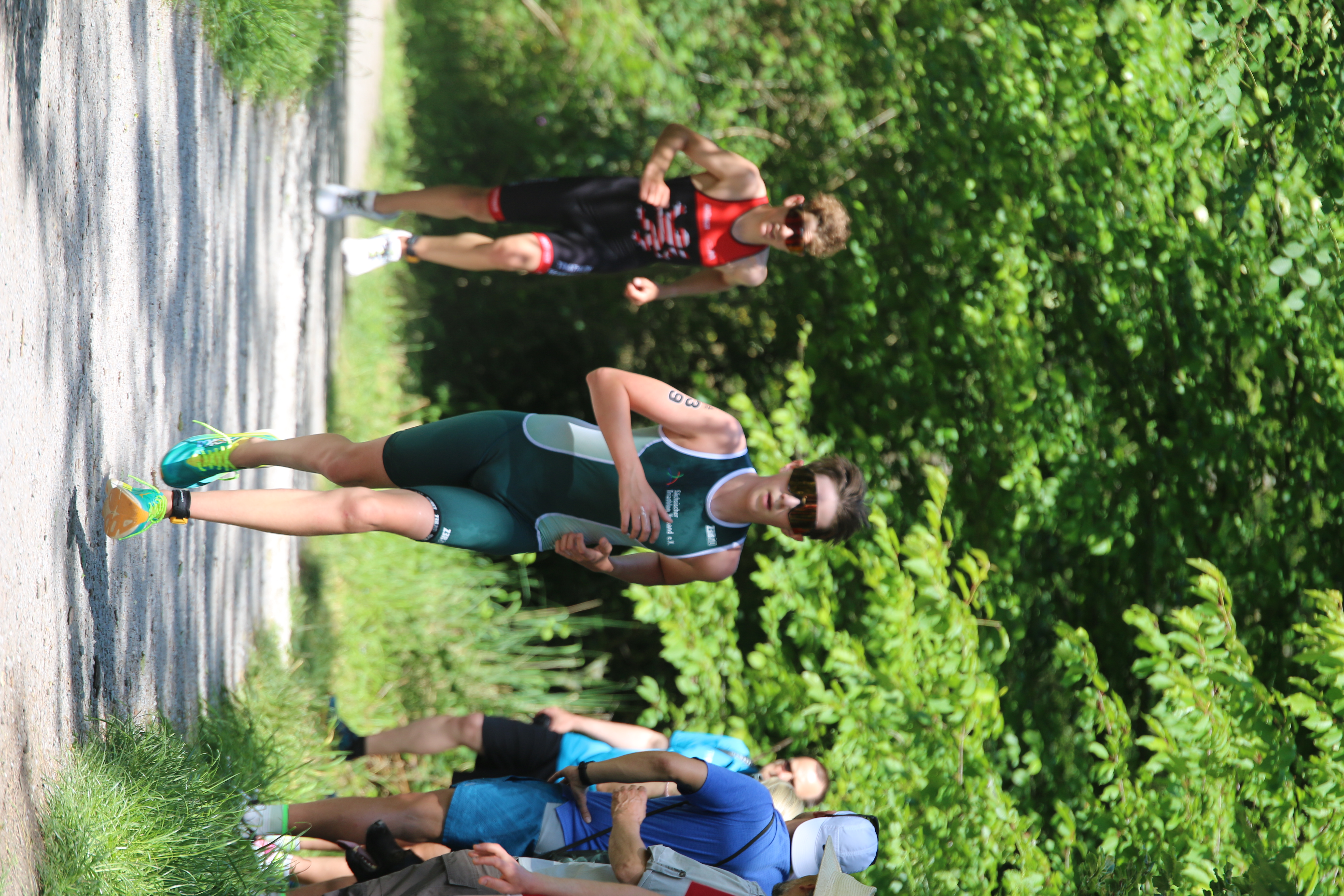 Von uns machten Ole und Till den Start. Die beiden durften 750m schwimmen, 18km Radfahren und 5km laufen. Ole und Till verpassten leider den Anschluss nach ganz vorne beim Schwimmen. Auf dem Rad zeigten die beiden eine gute Leistung, jedoch konnten sie beim Laufen ihre Stärke nicht ausspielen. Dadurch reichte es nicht für Top-Platzierungen.