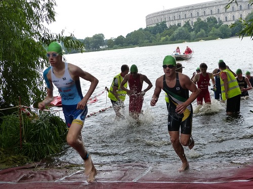 Danach startete in derJugend A Anton bei männlich und Maria und ich (Anne) bei weiblich. Maria und ich schlugen sich ganz gut im Schwimmen und kamen im Mittelfeld und somit in der Verfolgergruppe aus dem Wasser. Diesmal herrschte generelles Neo-Verbot.