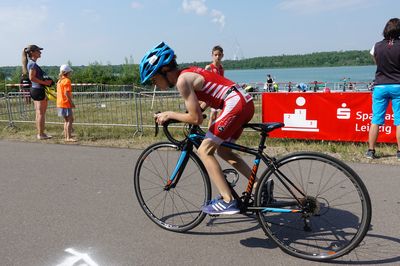 Mit souverränen Wechseln und sehr guten Disziplinleistungen setzte sich hier Hannah für den TV Dresden in Szene und blieb so auch nach Abgabe der Führung auf dem Rad immer im Kontakt zur späteren Siegerin Naja Eschler von Elbland Coswig Meißen. Platz 2 am Ende für Hannah.