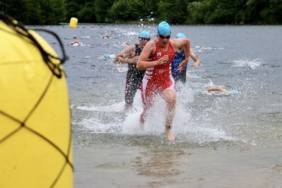 Wechselzone 1 Schwimmen-Rad – am Schwimmstart Mauster Kiessee