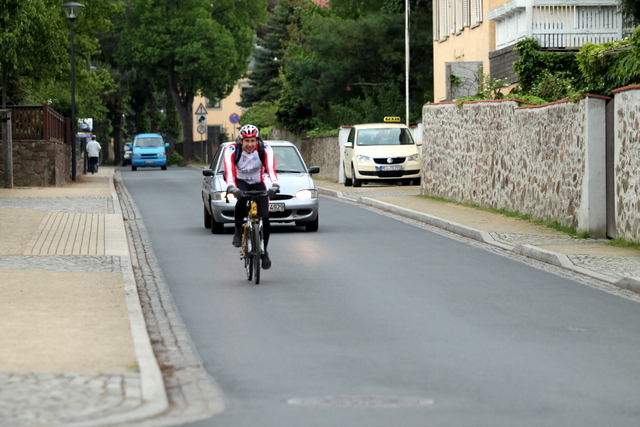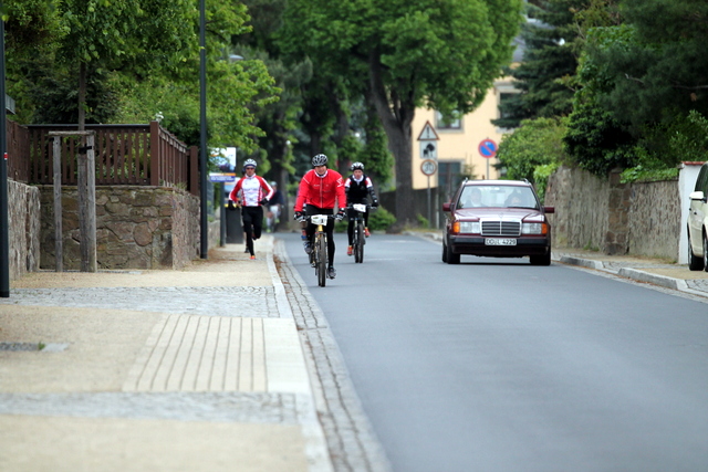 Die nächsten Kilometer verliefen dann bis Pirna ereignislos. Um die verlorene Zeit aufzuholen, haben wir die Wechsel auf 3 Minuten verkürzt und eine höhere Durchschnittsgeschwindigkeit zu erreichen. Als wir nach Pirna einliefen, konnten wir von oben bereits die vor uns liegenden Teams auf der Elbbrücke erkennen, die wird dann kurz nach der Flussüberquerung stellen konnten und so ging es dann Schlag auf Schlag. Kurz nach Pirna kam der 1. von 2 längeren und steileren Anstiegen. Wenn hier die Wechsler nicht vorraus fuhren, hatten sie keine Chance gegen die Läufer.
