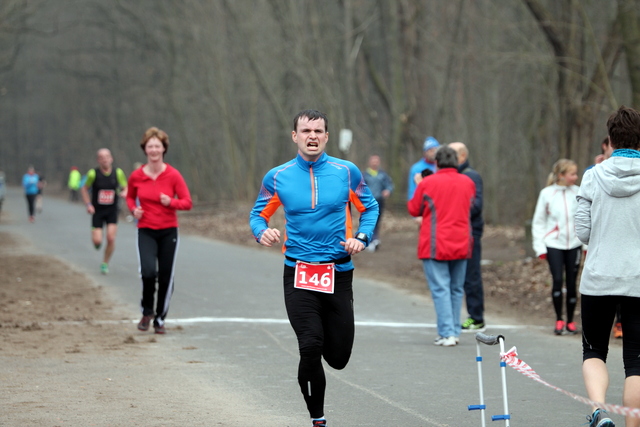 Vom Wetter her war es für diese Jahreszeit recht gut: kein Schnee, der mich im letzten Jahr ordentlich Zeit gekostet hatte und angenehme 6 Grad, allerdings leider bewölkt. Um 11 Uhr erfolgte der Startschuss. Gefühlt waren es wieder ein paar Teilnehmer mehr als im letzten Jahr. Mit mir ging auch Kathleen Horn vom Triathlonverein an den Start, sie lief allerdings nur die 5,8 km (2 Runden, Frauen wurden nur hier gewertet).