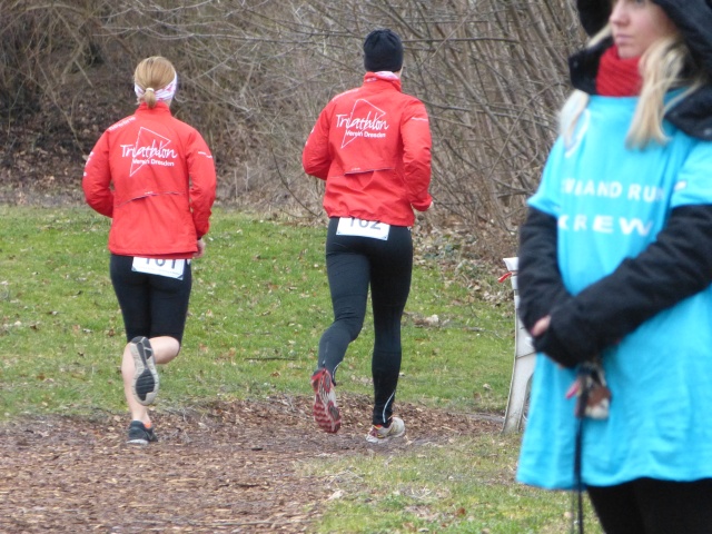 Nach einer kurzen Pause, die Zeit für eine Besichtigung der Laufstrecke ließ, wurden die Athleten auf die zwei leicht crossigen 2,5km-Runden kreuz und quer durchs Sportforum geschickt. Da im Massenstart und nicht nach der Gunderson-Methode losgelaufen wurde, sagte der Zieleinlauf natürlich relativ wenig über die Endplatzierung aus. Diese konnte man im Anschluss aus der Ergebnisliste als Summe beider Einzelzeiten entnehmen. Auch die vierte Diziplin kam natürlich nicht zu kurz. Das leckere Kuchen- und Obstbuffet wurde förmlich abgefräst.