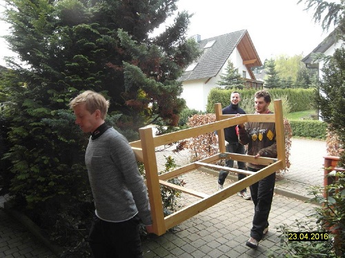 Während des Umzuges konnten wir uns von den Talenten der Protagonisten reichlich überzeugen: Maximal-Max wie immer: „Wenn ich das Bett nicht auseinander geschraubt bekomme, dann trage ich es eben im Ganzen die Treppe herunter“. Marvin kümmerte sich liebevoll um unser Kind, oder besser: Frida zeigte ihm, wie man das „Steckerspiel“ richtig spielt. Marco entpuppte sich als geschmeidiger Transporterfahrer. Fugi und Katrin bewiesen, dass sie in allen Lebenslagen bereits ein eingespieltes Team sind. Jenser baute auch ganz ohne Aufforderung ganze Schrankwelten ab und wieder auf. Zaisi hat wie immer den Überblick über das Ganze behalten und die Hauptkoordination übernommen. Danny’s Talente blieben leider etwas verborgen, da er diese aufgrund der kräfteraubenden Radanfahrt mit dem Singlespeeder nicht voll ausschöpfen konnte.